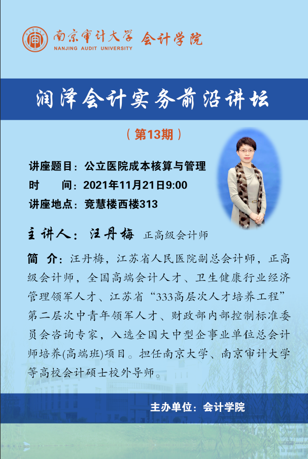 润泽会计实务前沿讲坛第13期:汪丹梅-公立医院成本核算与管理